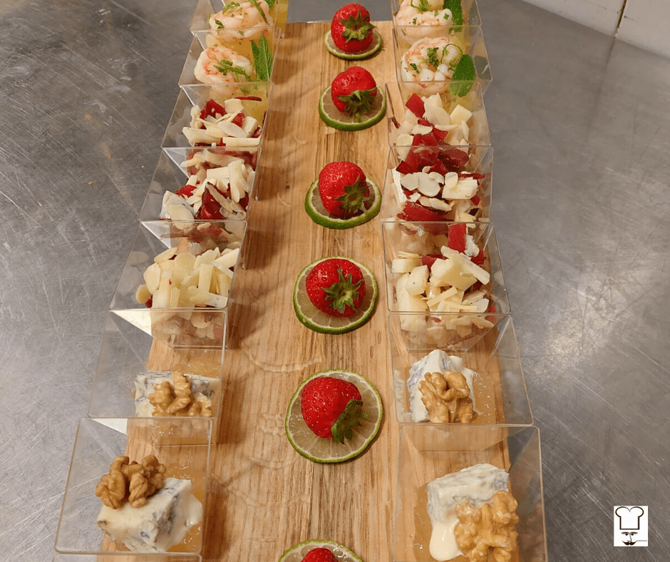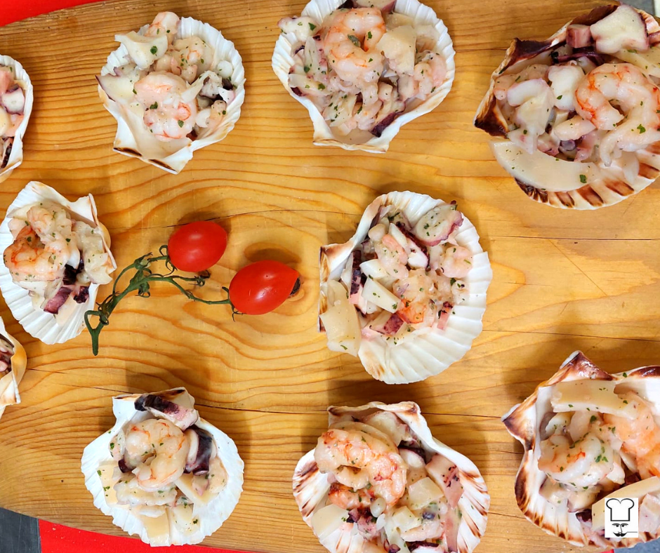 Filetto di Salmone con verdureFiletto di Orata con panatura croccanteBicchierino Paté MaisonParmigiano Reggiano e NociRoselline di Bresaola con mousse di formaggioVeneziana GastronomicaFrittura di PesceBranzino agli Agrumi di SiciliaRisotto con Filetti di Pesce PersicoBicchierino Gorgonzola, Marmellata di Pere e NociTagliere di Formaggi semi stagionatiFarro e PomodoriniConchiglie al Sapore di mareMelone, Kiwi , AlbicoccheBicchierino di Pesce Spada alla Siciliana con Finocchio, Arancia, CapperiBicchierino Gambero MojitoQuiche e FocacceFocaccia ligure con Pesto, Formaggio tenero e stracciatella di BresaolaSuper tagliere con bicchierini assortitiFiocco di Prosciutto crudo di Parma e Salame Milano