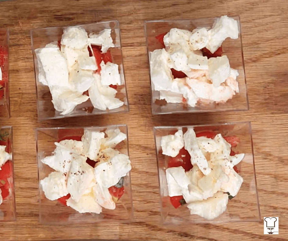 Focaccine e GrissiniBicchierino TricoloreBicchierino Cocktail di GamberettiCalamari ripieniFiletto di Salmone grigliatoFiletto di Salmone con verdurine Verdure pinzimonioPomodorini con formaggio tenero, Olive taggiaasche e Kiwi